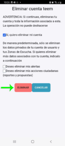 Sentimos mucho que desees eliminar tu cuenta Teem, Recuerda que «Juntos estamos mas seguros.»